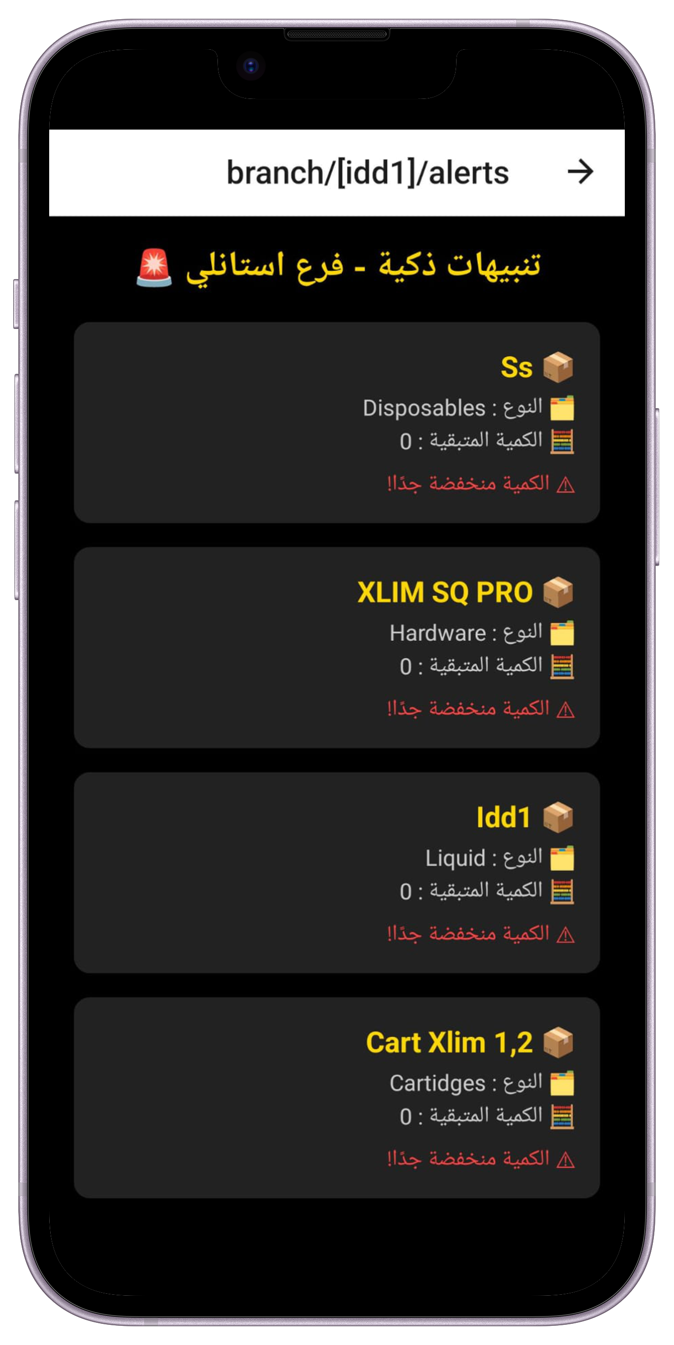 إدارة المخزون والتنبيهات والنواقص وتحويل بين الفروع.