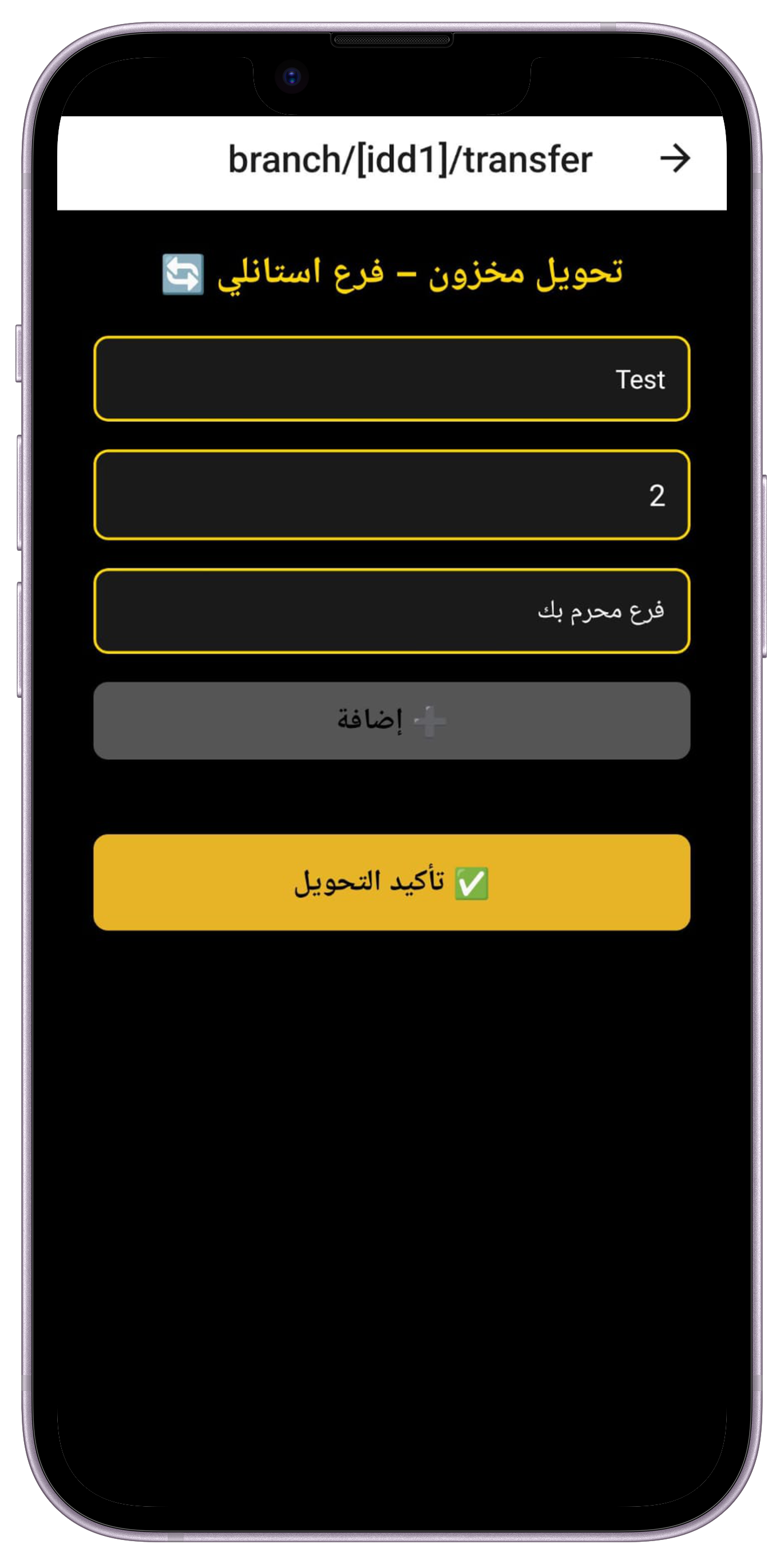تحويل آمن للستوك مع قبول/رفض وتتبع.